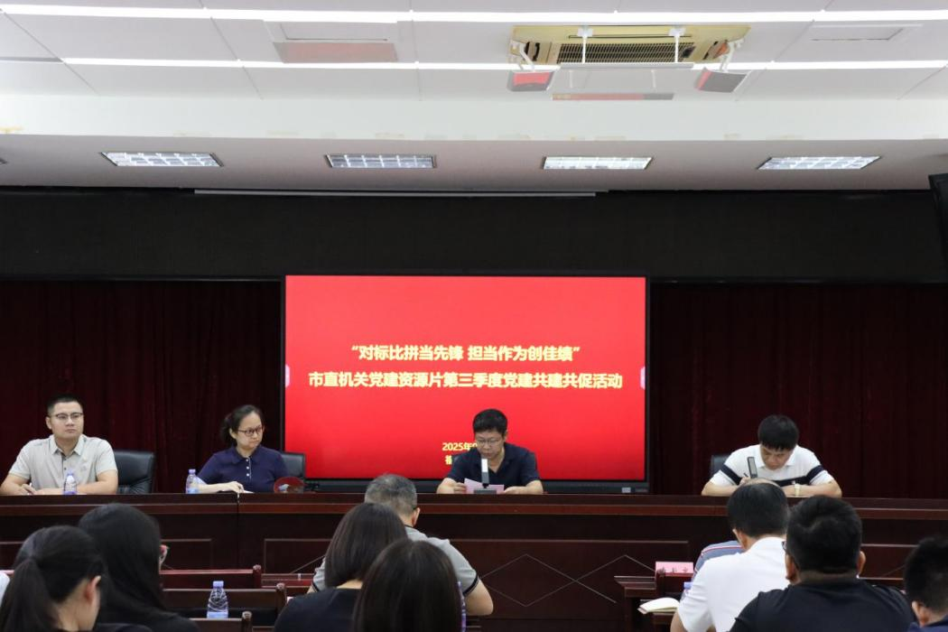 为深化拓展“深学争优、敢为争先、实干争效”行动,扎实推进“三对标三比拼”党员实践活动,9月24日市直机关党建资源片区开展“对标比拼当先锋 担当作为创佳绩”党建共建共促活动。市直机关工委挂钩领导,片区各成员单位分管领导、联络员及青年党员等30余人参加。