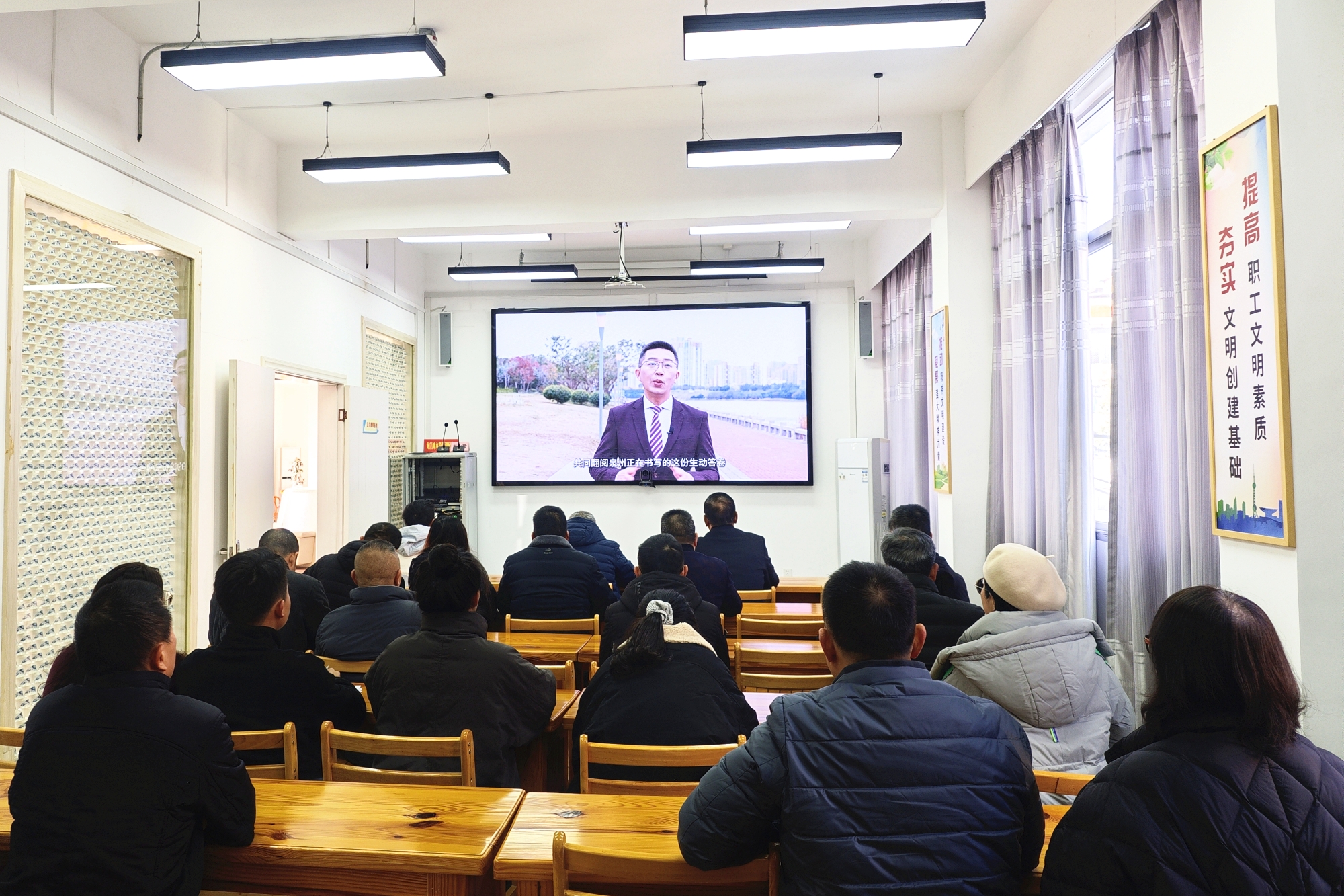 1月9日上午,市直水利系统各党支部组织党员干部观看“‘泉’民开讲”之“扬帆新程 奋进泉州”专场宣讲