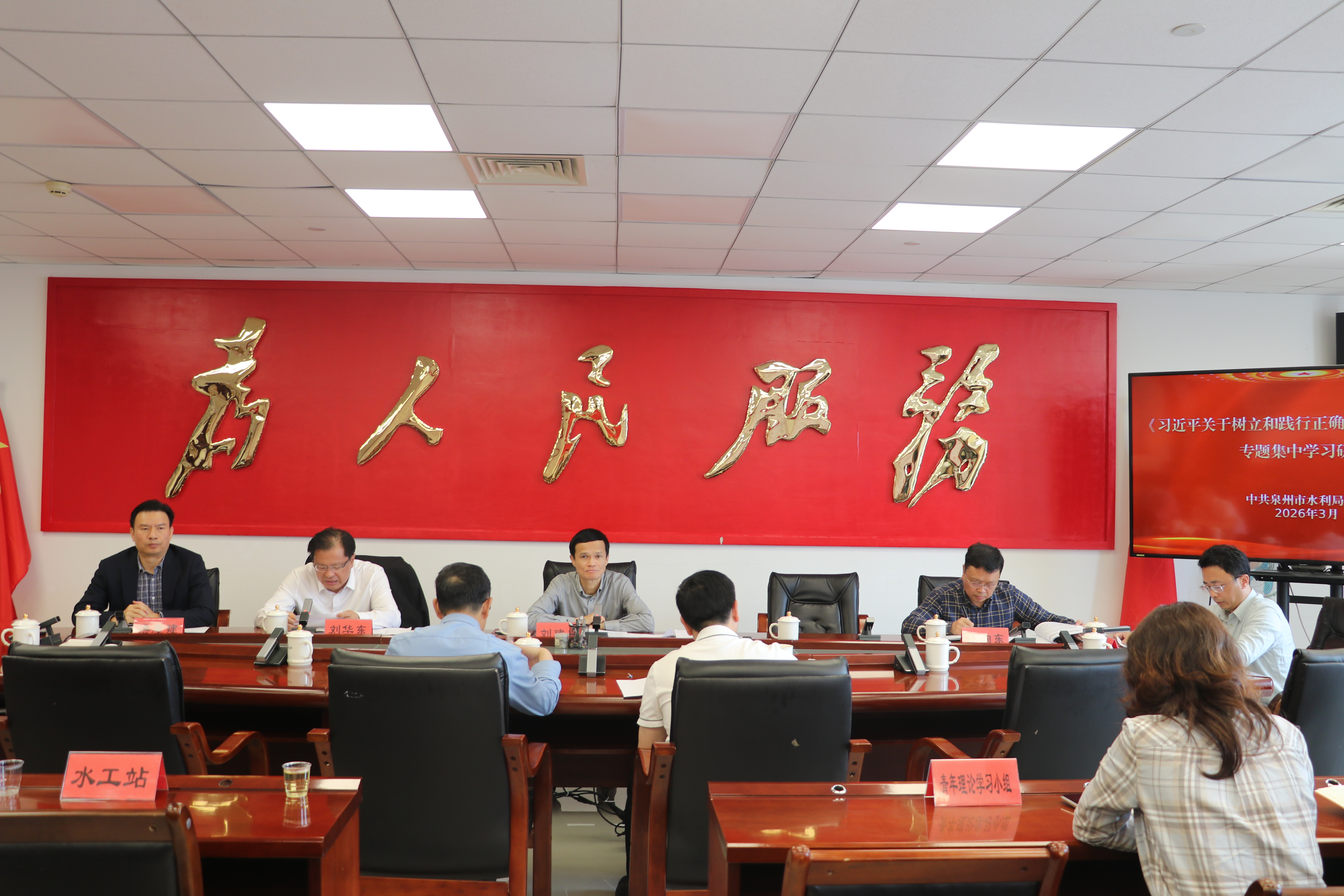会议强调,党员领导干部要以此次专题学习为契机,将学习成果转化为推动泉州水利高质量发展的具体行动。一是持续深化理论武装,要把学习《习近平关于树立和践行正确政绩观论述摘编》作为长期政治任务,坚持读原著、学原文、悟原理,不断增进政治认同、思想认同、理论认同、情感认同。二是切实抓好问题查摆,对照政绩观偏差主要问题清单,深入查摆工作实际中存在的问题,做到边学边改、立行立改。三是全力推动工作落实,要把树立和践行正确政绩观同抓好当前水利重点工作结合起来,聚焦“十五五”水利发展规划编制,持续深化河湖长制,牢牢守住水旱灾害防御底线,以实实在在的水利业绩,为泉州建设21世纪“海丝名城”提供坚强的水安全保障。