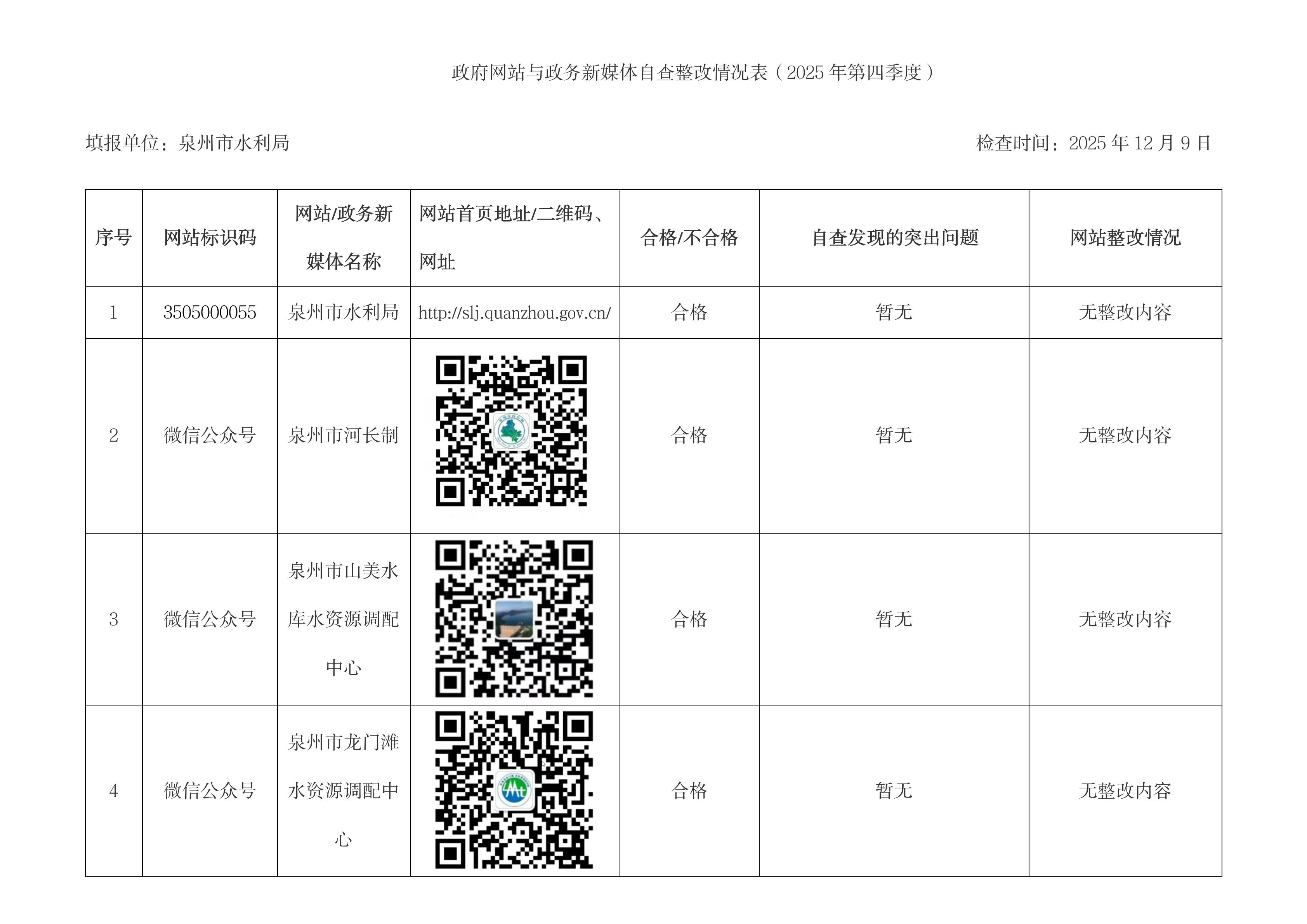 政府网站与政务新媒体自查整改情况表(2025年第四季度)